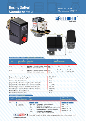 MONOFAZE BASINÇ ŞALTERİ (220V)